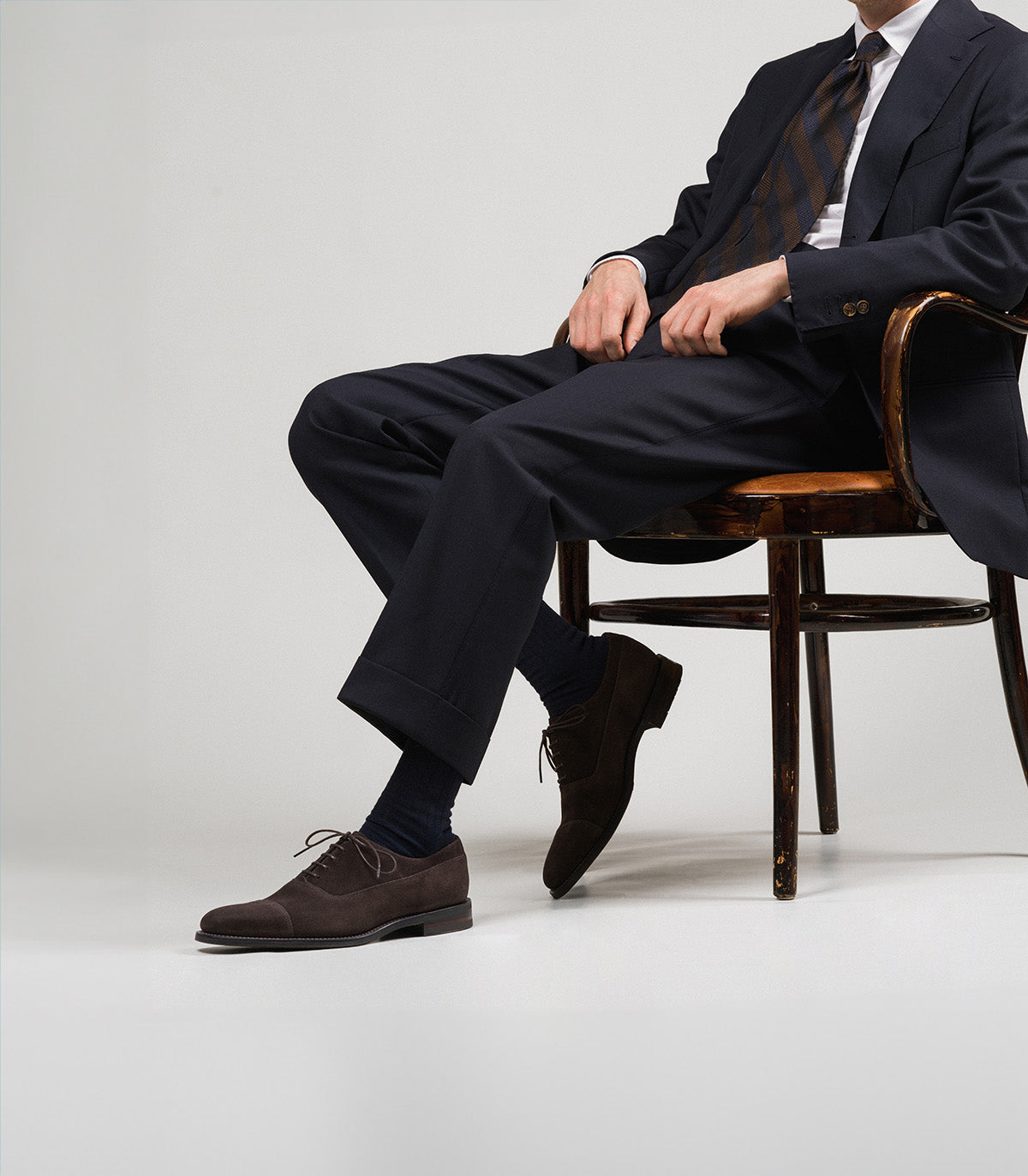 Truman is a Balmoral Cap Toe Oxford in dark brown suede. Your perfect companion for semi-formal attires. Featuring Goodyear welted Shadow rubber soles for greater longevity and grip but still with a sleek profile. Truman uses the ‘river’ last shape, and is available in a ‘f’ fitting. These shoes are designed, engineered and made in our high-grade Kettering factory in England.