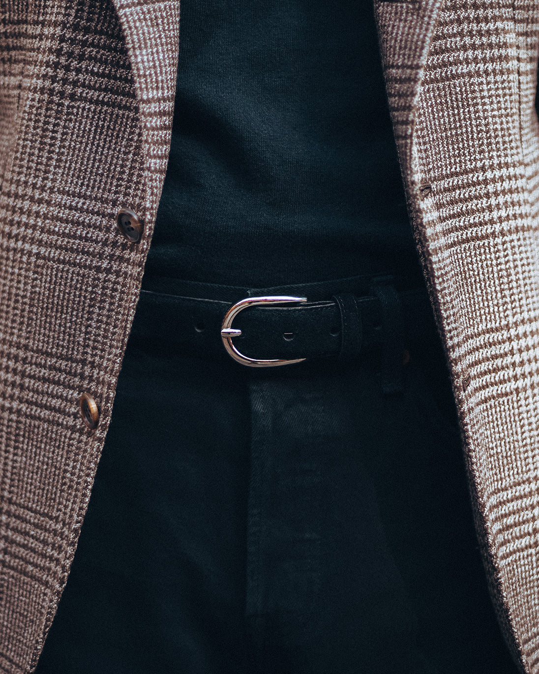 A sophisticated blend of elegance and timeless design. Crafted from premium black suede. Its sleek 2.8 cm width and round buckle create a refined, understated look, making it the perfect accessory for both formal and casual outfits. A true wardrobe staple available in four options of leather.