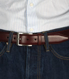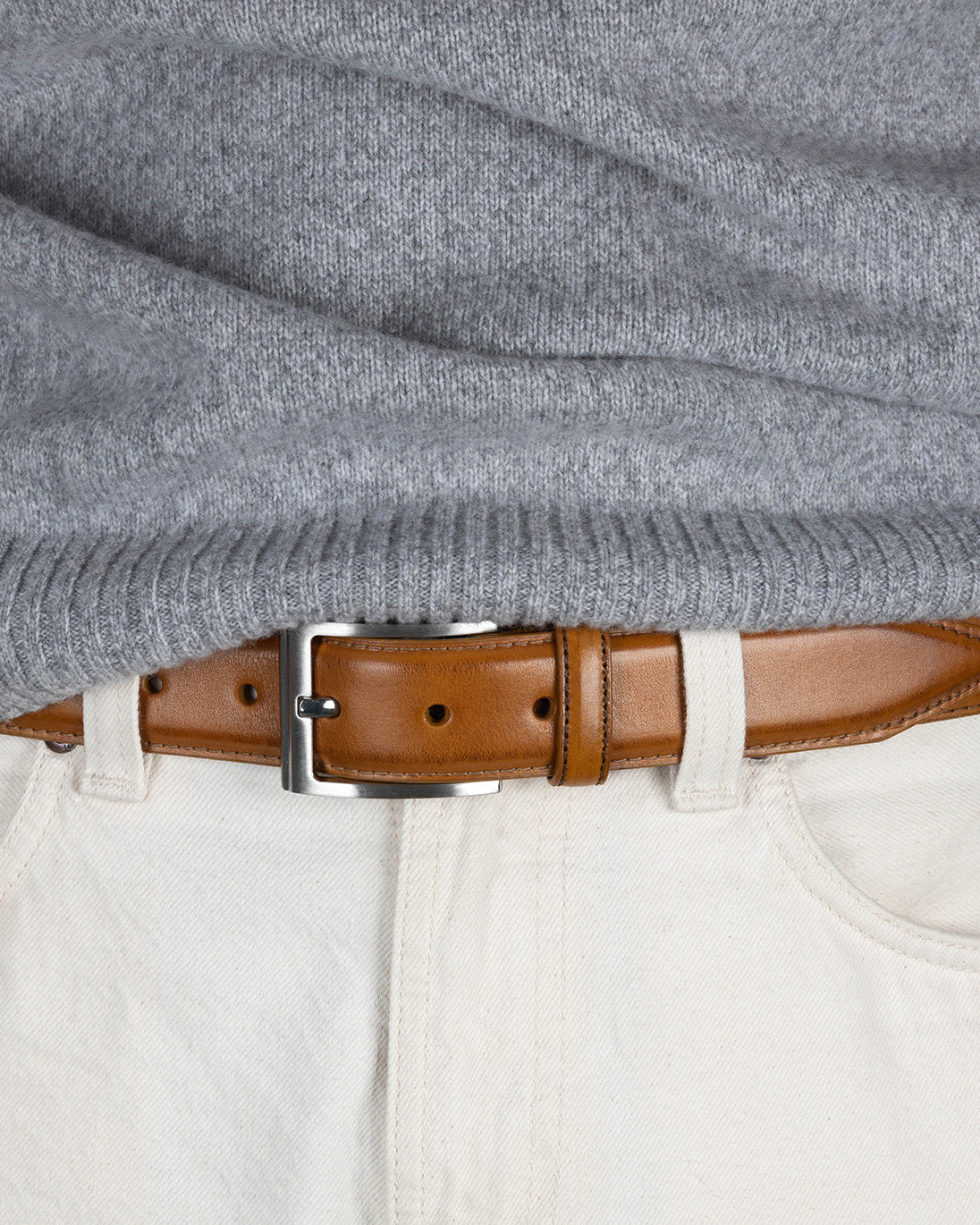 Made from premium calf leather, this belt combines timeless craftsmanship with everyday versatility. With a traditional square buckle and its 3.5 cm width the Philip belt offers a polished, refined look that complements both casual and formal attire. Available in six options of leather.