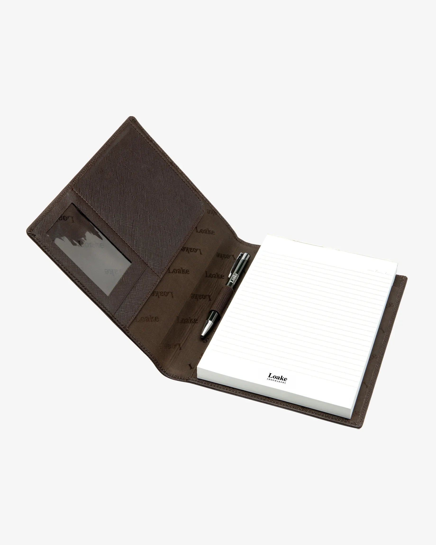 The Loake Savoy Notepad is a premium leather accessory, crafted from 100% textured leather for a sleek, professional finish. Fully lined with Loake’s signature fabric, it features multiple card slots, an ID window, and comes complete with a Loake-branded pen and refillable notepad insert. Designed with both practicality and style in mind, Savoy is ideal for meetings, travel, or daily planning, keeping your essentials neatly organised in one refined case. A perfect companion for the modern professional, it blends heritage craftsmanship with contemporary function.
