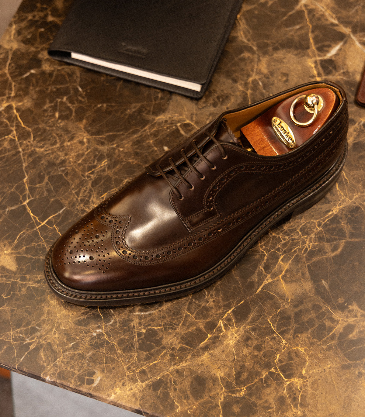 An icon of English shoemaking, the Loake Sovereign has been a core part of our collection for decades. Its timeless longwing brogue design reflects classic British style and enduring craftsmanship.