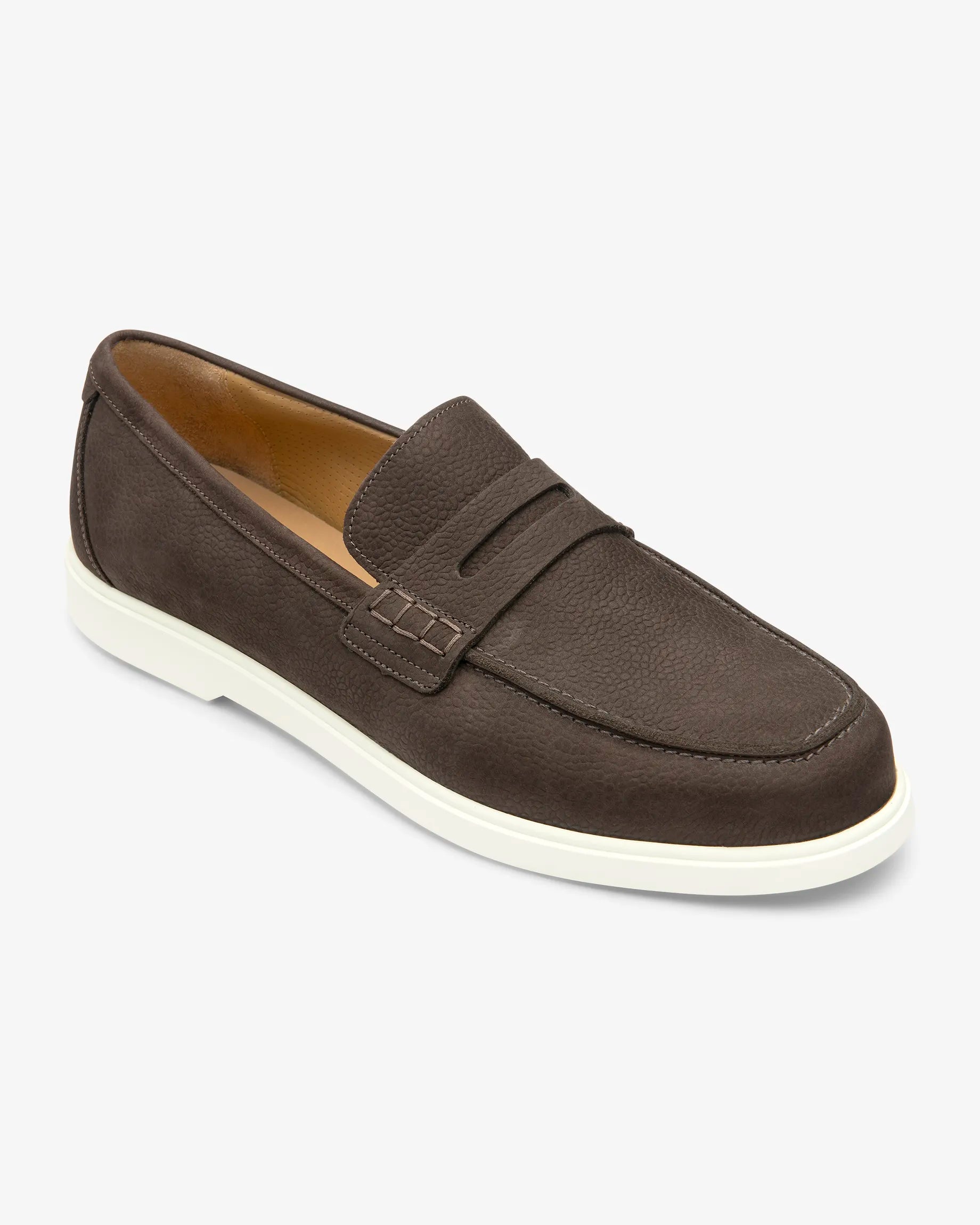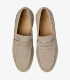 Como, a comfortable and soft penny loafer in grey nubuck. Completes any casual or summer outfit. Pair with shorts, light blue denim or linen trousers.