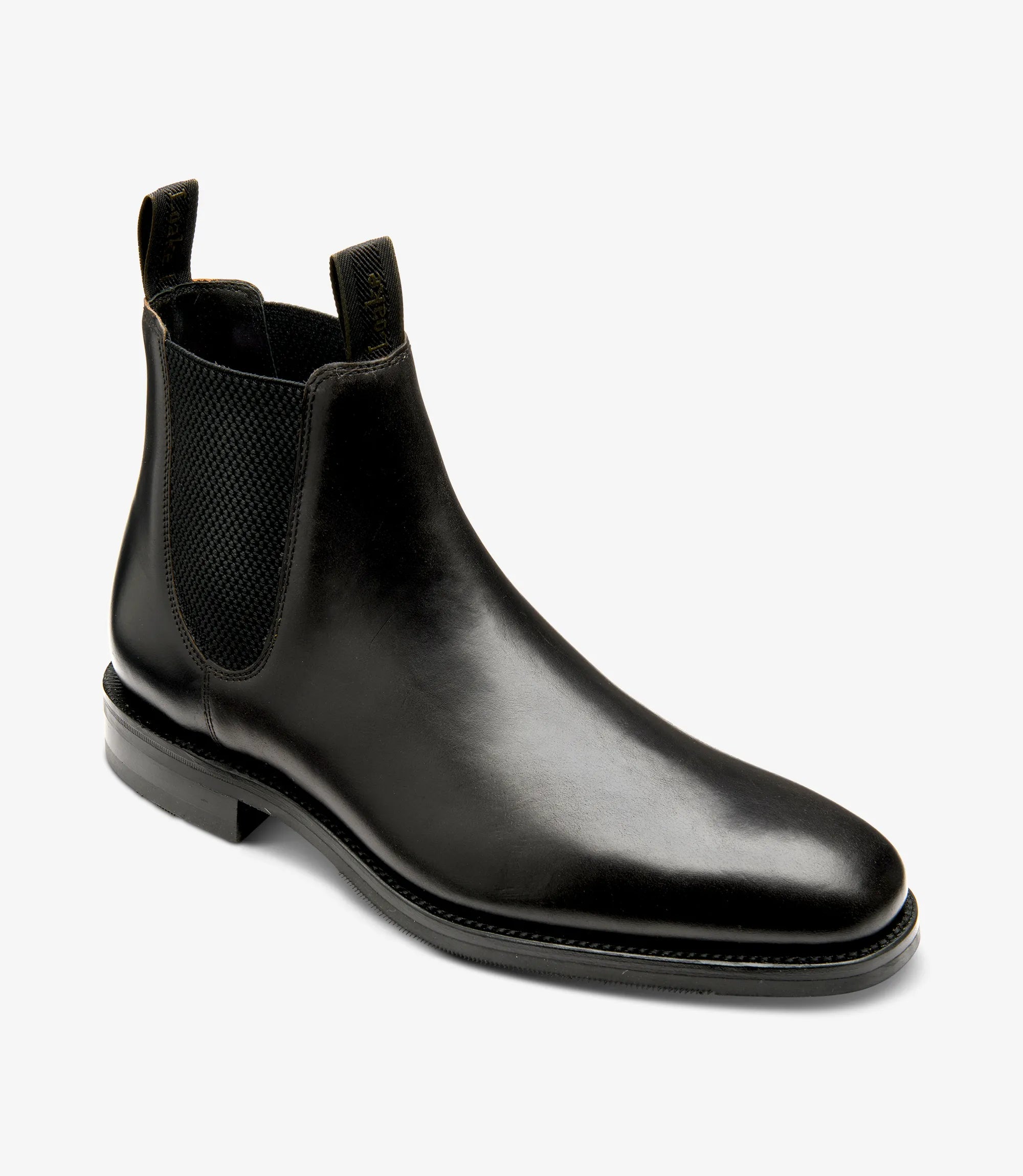 Our Emsworth is a plain Premium Chelsea boot in Black Calf Leather. Features Goodyear Welted Shadow rubber sole for greater longevity and grip, whilst maintaining a slim profile. Capital last shape in F fitting.