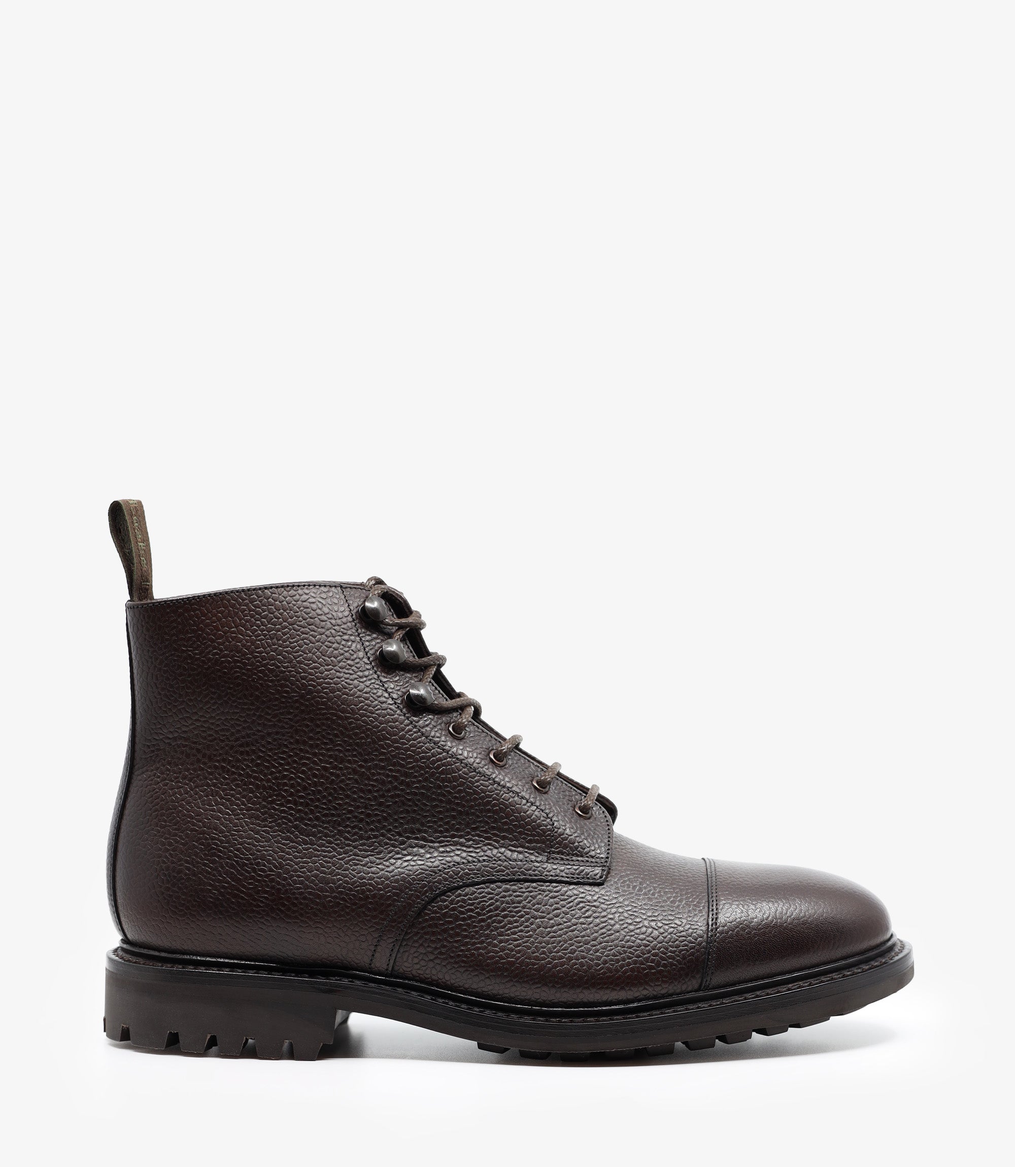 Sedbergh is your perfect winter warrior, a military-style boot with Commando Rubber Soles. A derby, toe-cap boot made in Dark Brown Grain Calf leather. Lacing these boots up are very easy with the added speed hooks and pulling strap.