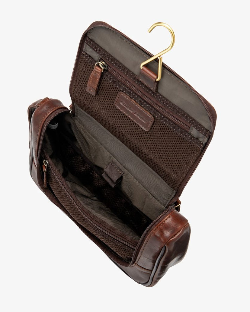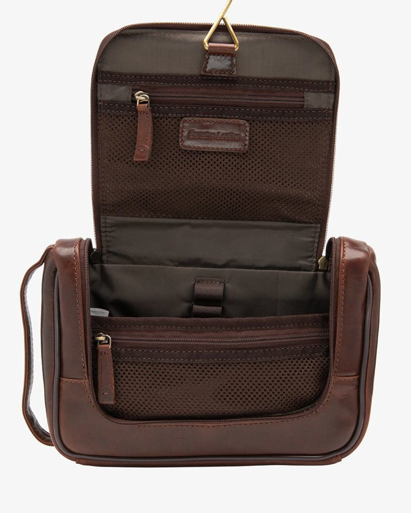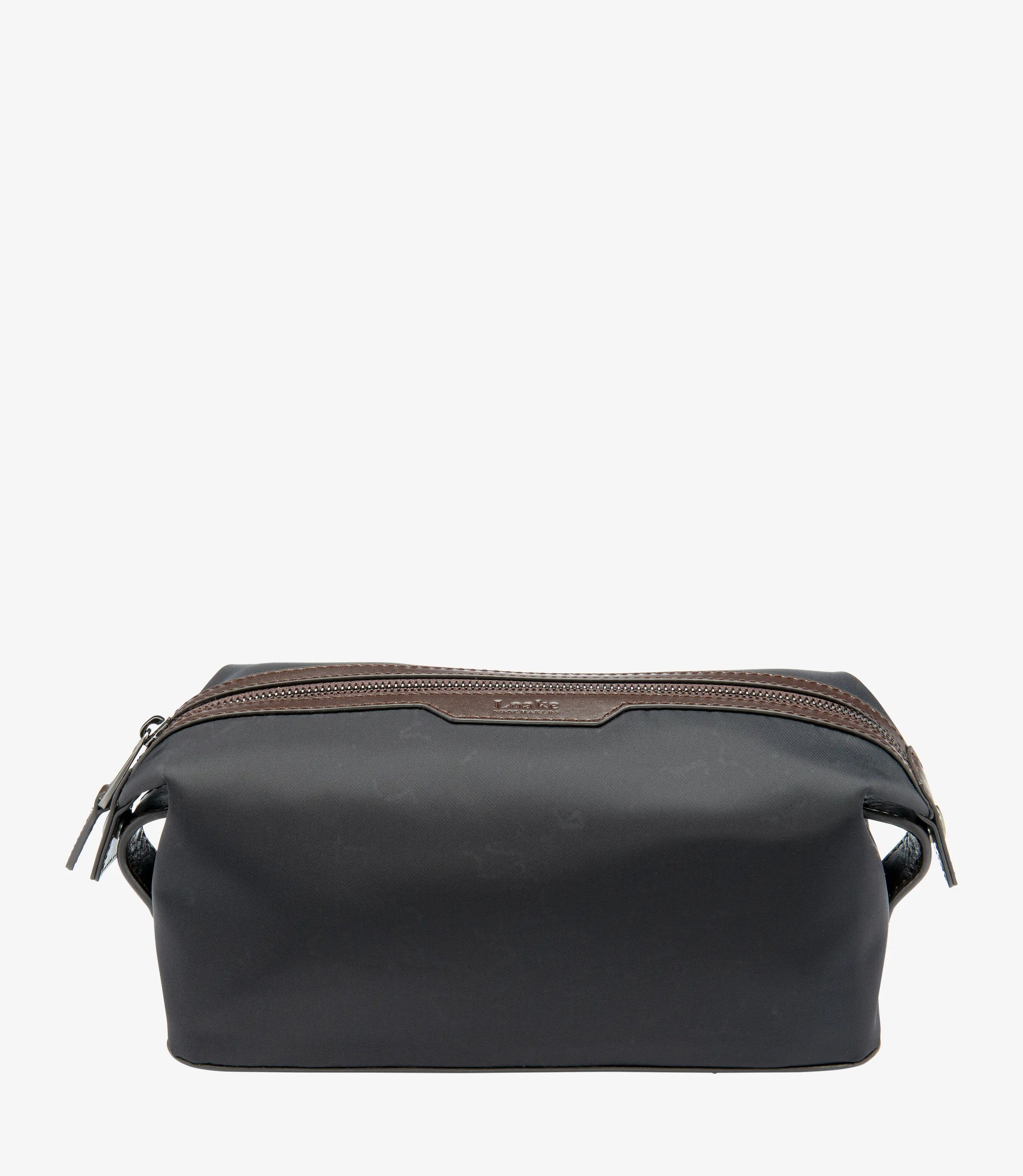 The Welland Wash bag combines durable nylon with refined leather accents for a sleek, travel-ready design. It features a spacious interior with one internal zip pocket and a small detachable pouch secured with side press studs for easy access and added versatility. Practical and stylish, it’s the perfect companion for keeping your grooming essentials organized, whether at home or on the move.