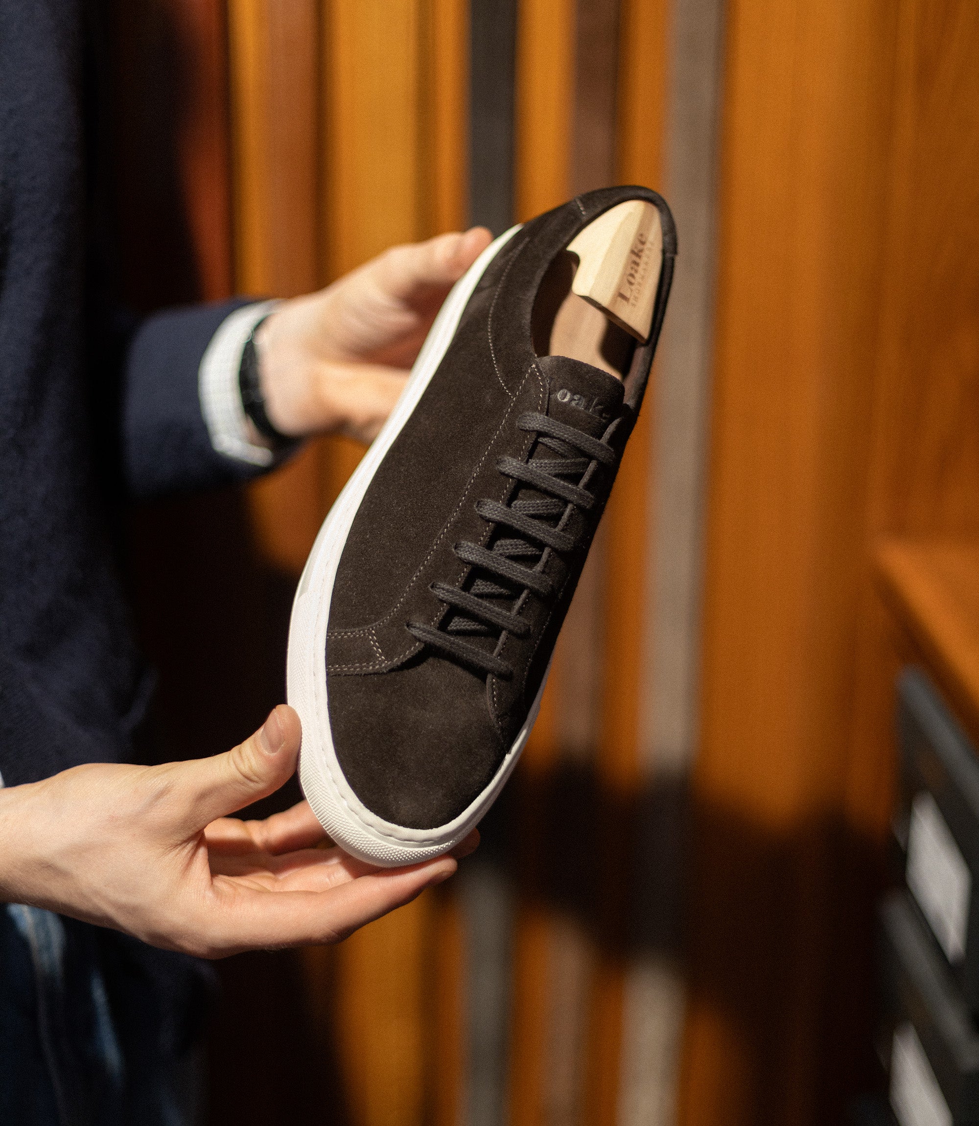Sprint is a classic premium sneaker made in dark brown suede. Featuring side-stitched off white cup rubber soles. Sprint is manufactured on the ‘Sprint’ last shape, and is available in a ‘f’ fitting.