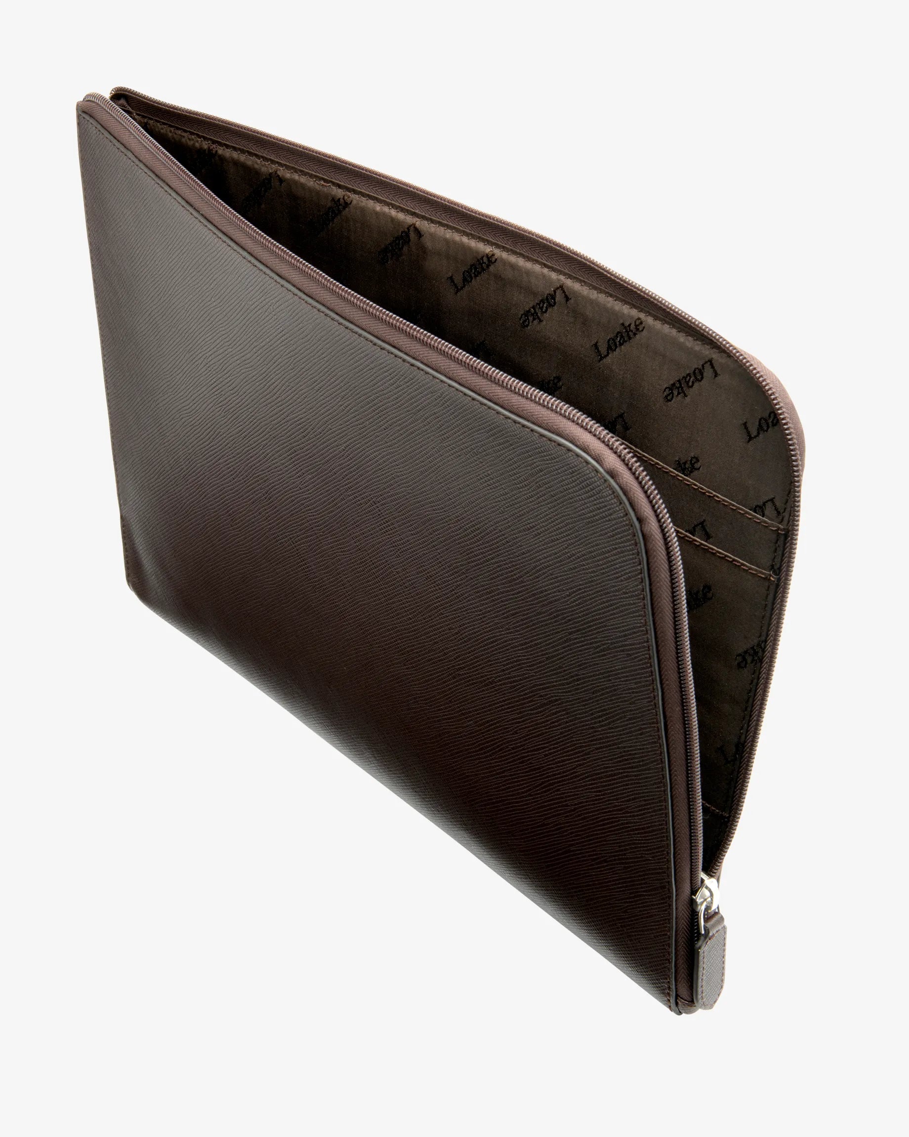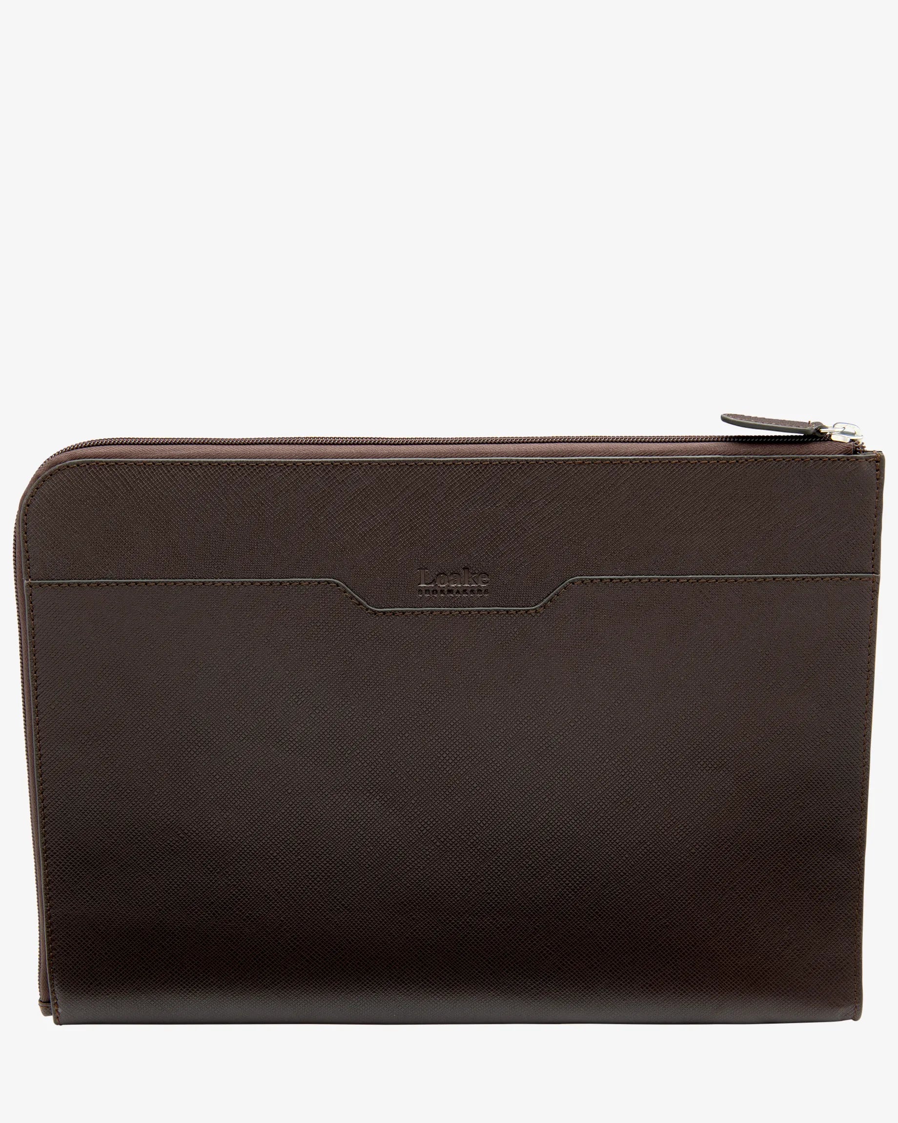 Protect your tech in style with the Gresham grain leather Laptop Cover. Crafted from 100% textured leather and lined with signature Loake fabric for a refined finish. Designed to fit laptops up to 15″, it features a full-width internal pocket and two smaller pockets for accessories. A secure zip closure ensures everything stays in place. Sleek, practical, and durable, it’s the ideal accessory for work or travel with a touch of timeless style.